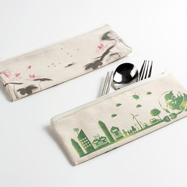 1. 環保餐具收納袋,採用本白帆布製成,雙面彩色印刷,展現獨特品牌形象。