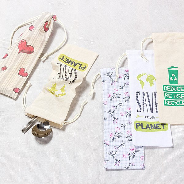 1. 環保餐具收納袋,本白棉布製成,環保又實用,適合企業客製化設計,展現企業形象。