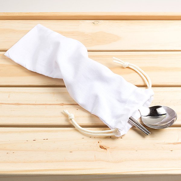 1. 環保餐具收納袋,染白棉布製成,綠色環保產品。