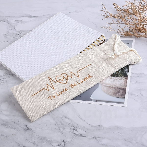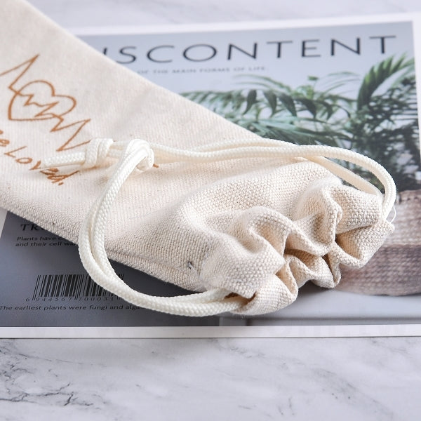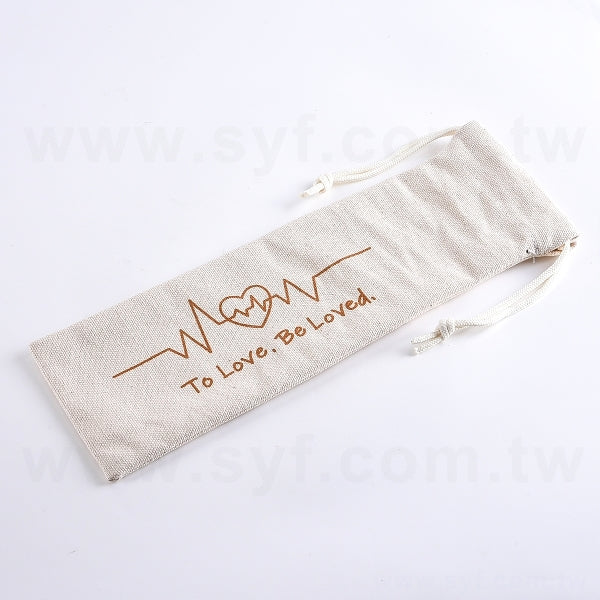 1. 本白棉布束口餐具袋,尺寸約8.2X27.5公分,方便攜帶使用。
