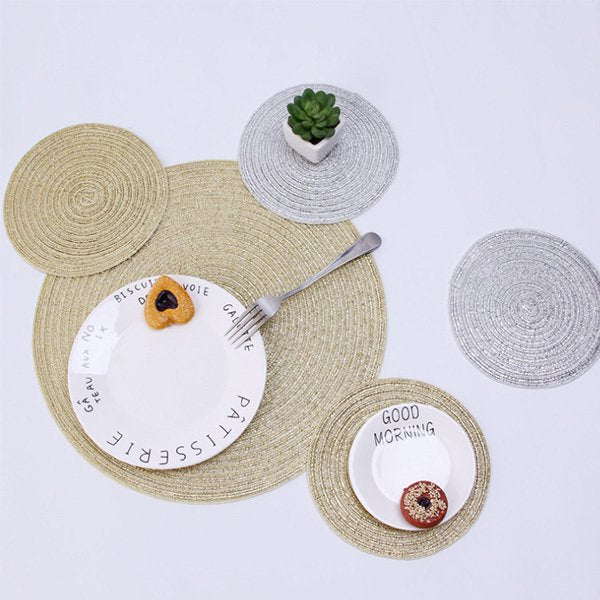 1. 北歐風圓形編織隔熱餐桌墊,精緻手工編織,質感十足,為餐桌增添溫暖氛圍。