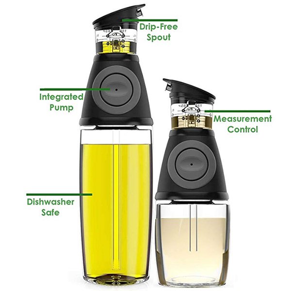 1. 高品質玻璃材質製成的油品分裝瓶套組,尺寸分別為17oz(500ml)和9oz(250ml),適合不同用途需求。