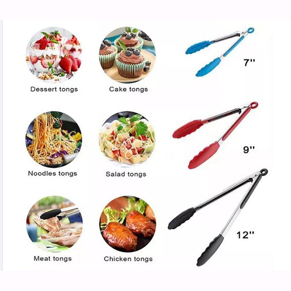 1. 專為廚房料理設計的矽膠食物料理夾,尺寸有小21cm、中26.5cm、大34.5cm可供選擇,滿足不同廚房需求,方便實用。