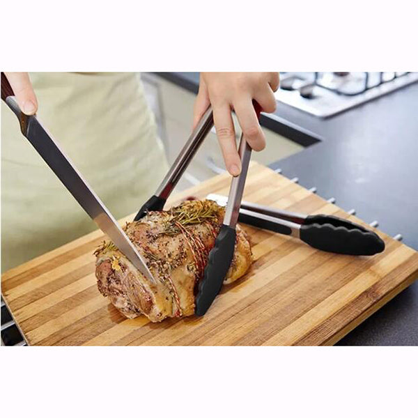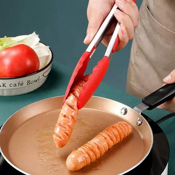 3. 不銹鋼夾頭設計的矽膠食物料理夾,耐用不易變形,使用壽命長,清洗方便,是廚房必備的好幫手。