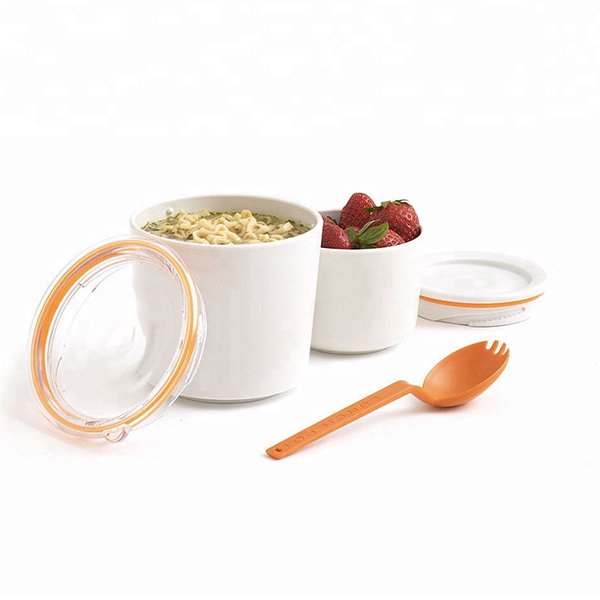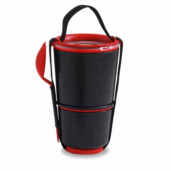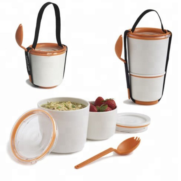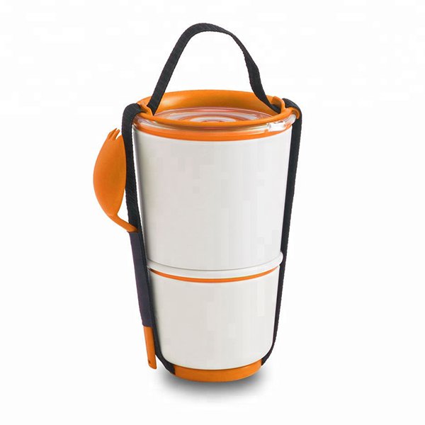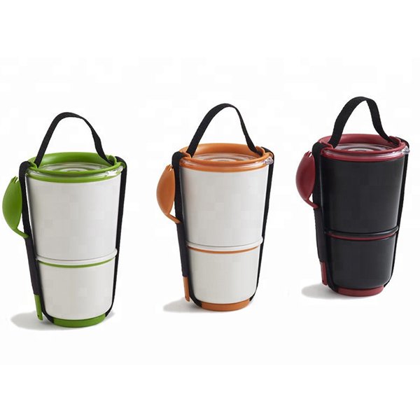 1. 便攜式杯狀分層午餐盒,塑膠材質,容量266G,堆疊嵌套設計,複古實用主義風格啟發,防水設計,方便攜帶液體食品。、