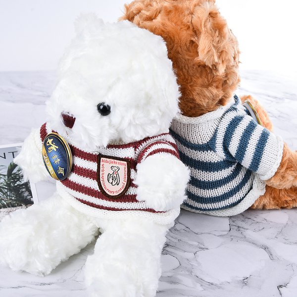 1. 玩偶-30cm毛衣泰迪熊玩具,採用柔軟玫瑰絨材質,適合辦公室或家居裝飾,展現企業溫暖形象。